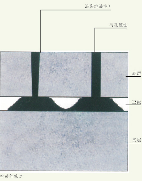*將空鼓處切縫或打孔灌注環氧樹脂漿料。